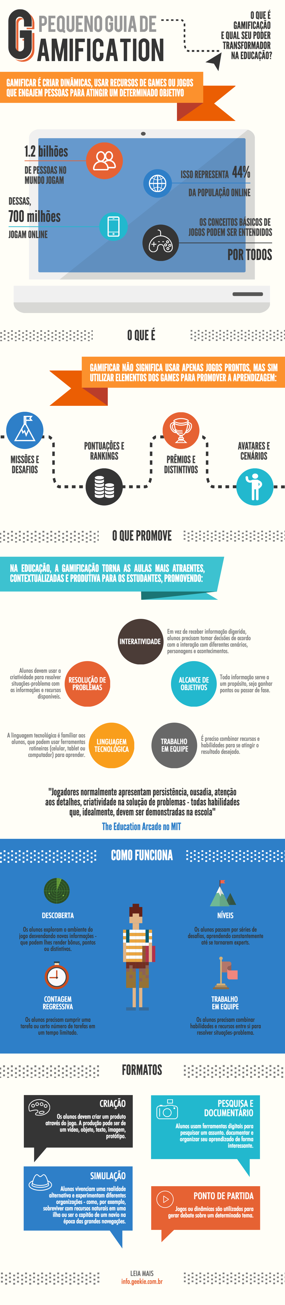 Gamificação consiste em utilizar recursos de jogos em outros contextos, como na educação. Confira o infográfico e inspire-se para gamificar suas aulas.